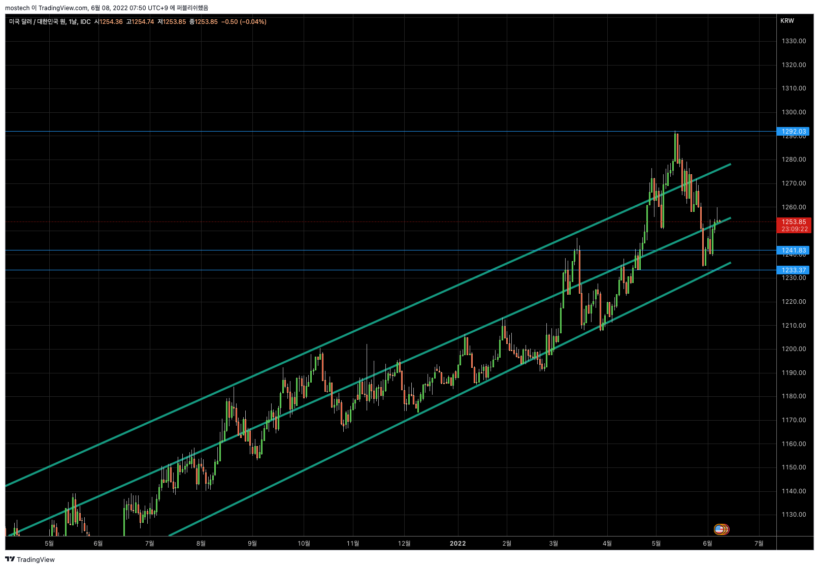 나스닥은 현재 보합수준으로 4~5일 진행중입니다. 이대로 보합으로 상단 초록선은 뚫고 죽 가줬으면 합니다.
