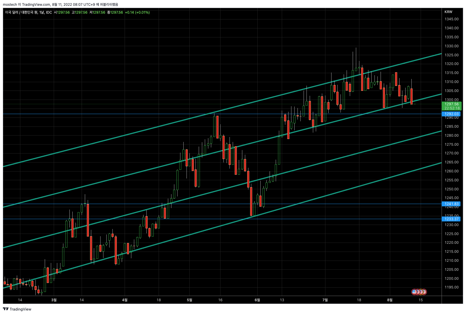 환율은 미국증시 폭등으로 좀 내리고 있습니다. 계속 내린다면 1279원 정도 수준으로 앞으로 예상합니다.