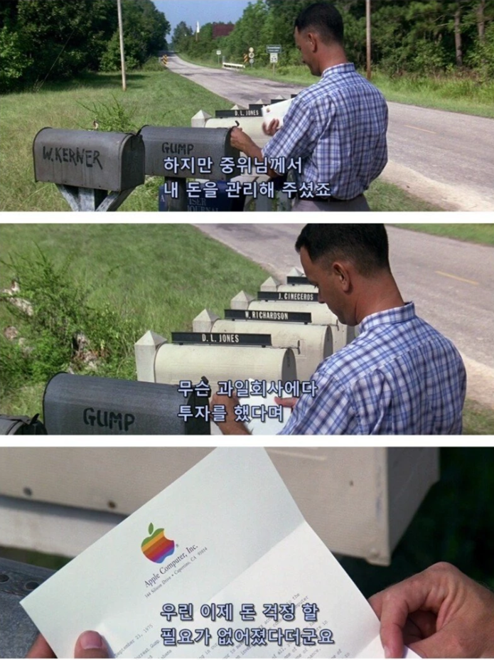 이 영화도 국내에서 매우 흥행한 영화 여서 만약 이 영화를 보고 애플컴퓨터에 투자했다면?
