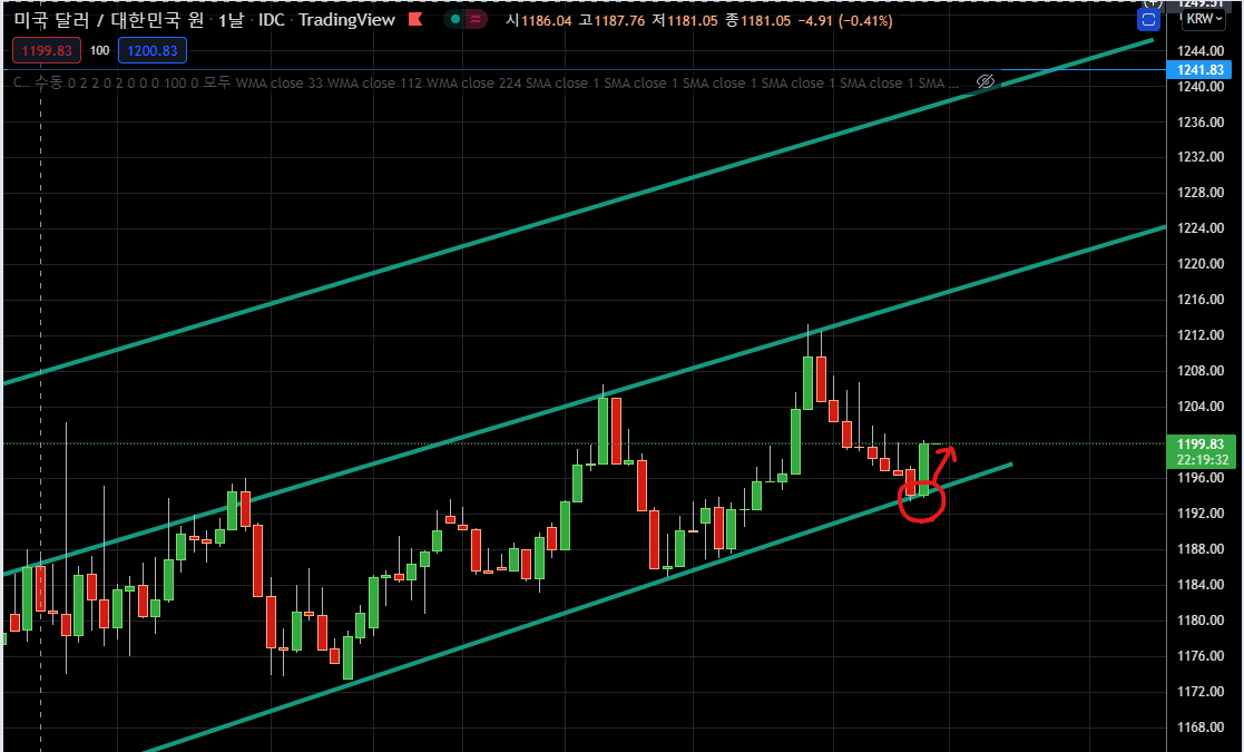 아니나 다를까 선을 딱 찍고 올라가지요?