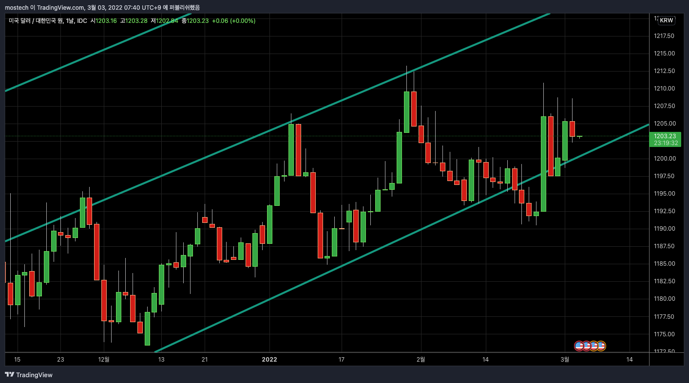 환율의 상승은 1~3달간은 계속 되지 않겠나 생각됩니다.