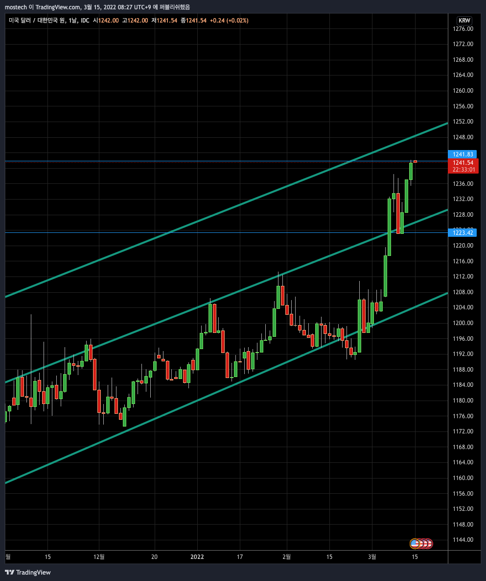이제 전 저점 까지 내려왔습니다. 아마도 FOMC미팅에서 예상대로 0.25%만 금리인상하면 이대로 전쟁이 마무리 될때 까지 횡보 하지 않을까 생각 됩니다. 만약 0.5%까지 올린다면 시장에 충격이 있을것으로 예상됩니다. 우리는 2차 매수는 FOMC미팅 이후에 해도 괜찮겠습니다. 어쨋든 전쟁으로 인해 미 연준에선 금리인상을 편하게 올리지는 못할것으로 전문가들이 예측을 하고 있습니다.
