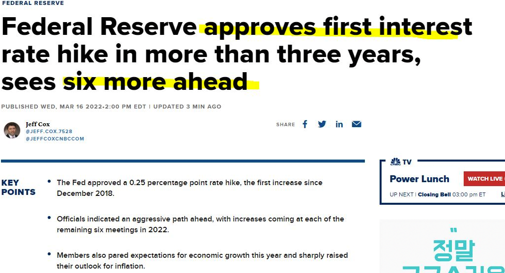 [2022/3/17]데일리오피니언-FOMC결과발표 0.25%인상 본문