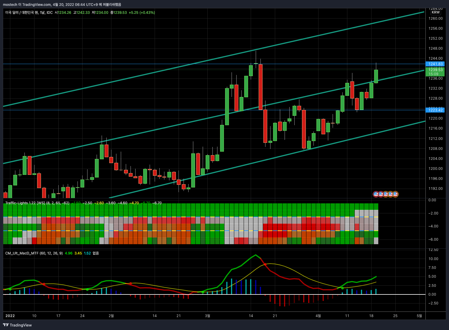 환율은 상승해서 거의 고가에 다가서고 있지만 하루 이틀 안에 떨어질 것으로 보입니다.